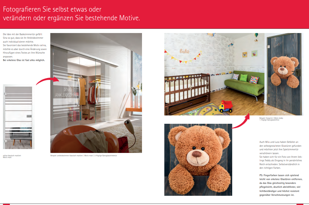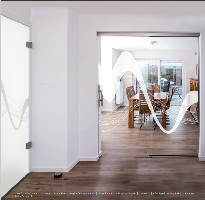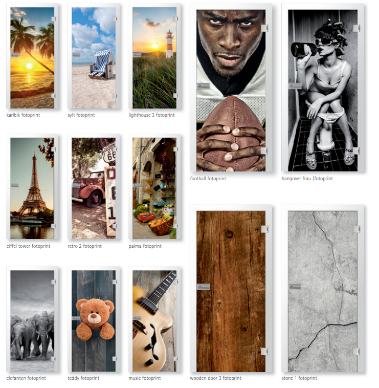 Der keramische Foto-Digitaldruck ist auch auf einer Einscheibensicherheitstür möglich. Er erlaubt die Zerlegung und den Druck großformatiger Darstellungen in Einzelbilder, sodass selbst Ganzglasanlagen und Gebäudefassaden mittels der Edge-to-edge-Technik bis an den Rand gestochen scharf gestaltet werden können. Suchen Sie sich ein Motiv aus dem Katalog aus oder zeigen Sie uns Ihr Wunschmotiv, wir fertigen es für Sie.