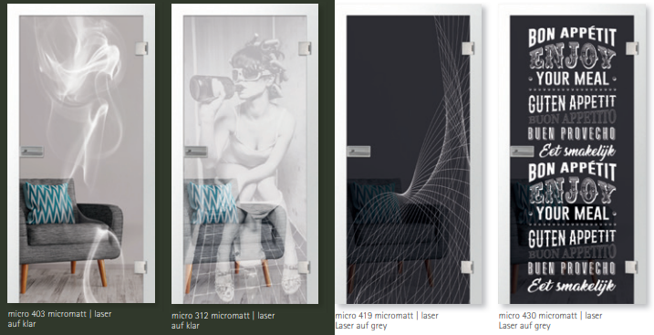 Bei uns erhalten Sie Türen von Erkelenz Glas. Erkelenz Glas steht seit 25 Jahren für Qualität „Made in Germany“. Sie erhalten Ihre Türen oder Spritzschutz für die Küche in jedem erdenklichen Design. Folgende Herstellungsprozesse stehen zur Verfügung: