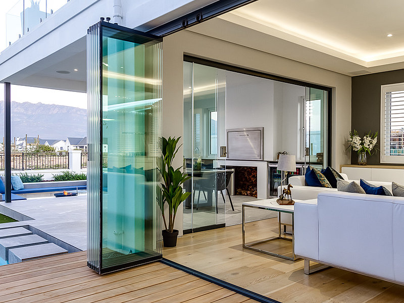 Dank der einzeln fahrbaren Glasflügel lassen sich die Schiebe-Dreh-Systeme von SUNFLEX über komplette Fronten öffnen. Durch ihren geringen Platzbedarf als zusammengefahrenes System entsteht ein besonders breiter Übergang von innen nach außen. Die Schiebe-Dreh-Systeme von SUNFLEX bestechen außerdem in puncto Variantenreichtum und möglicher Geometrien.